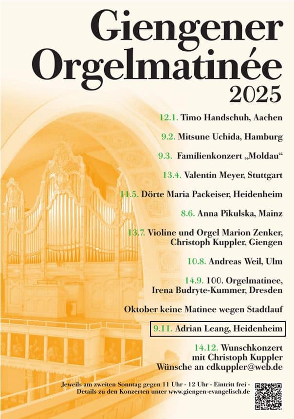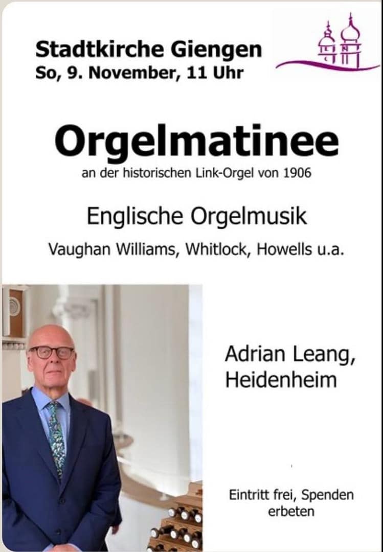 Unser Chorleiter des English Choir Heidenheim gibt ein Orgelkonzert als Teil der Giengener Orgelmatinée.