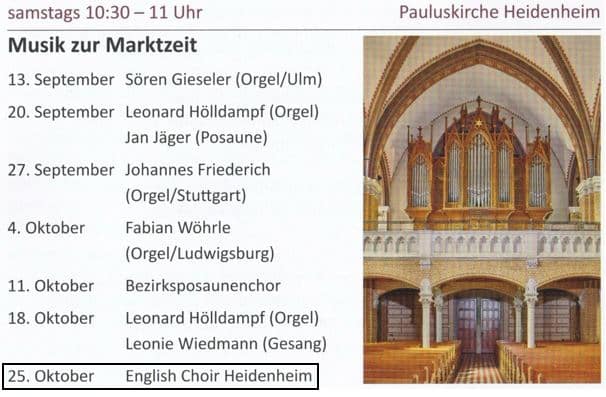 Der English Choir Heidenheim unter Leitung von Adrian Leang wird am 25. Oktober 2025 in der Pauluskirche in Heidenheim zu hören sein.